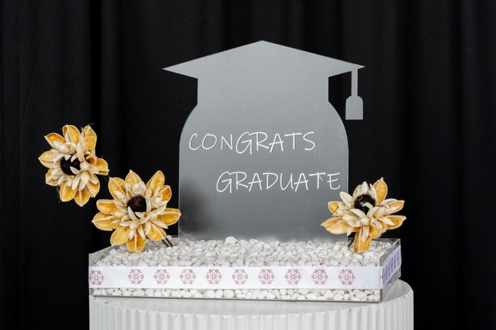 مع استاند تخرج اكريليك مميزه فاخر المقدم من متجرنا يمكنك تحويل ذكرى تخرجك إلى لحظات لا تنسى، حيث التصميم الأنيق المزين بباقة من الورود الصناعية الجذابة مما أضفى إليه لمسة ساحرة.